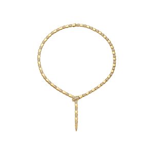 Serpenti Viper 18 kt yellow gold necklace with demi pavé diamonds