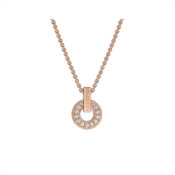 Bvlgari Bvlgari Necklace Bvlgari Bvlgari openwork 18 kt rose gold necklace set with full pavé diamonds on the pendant