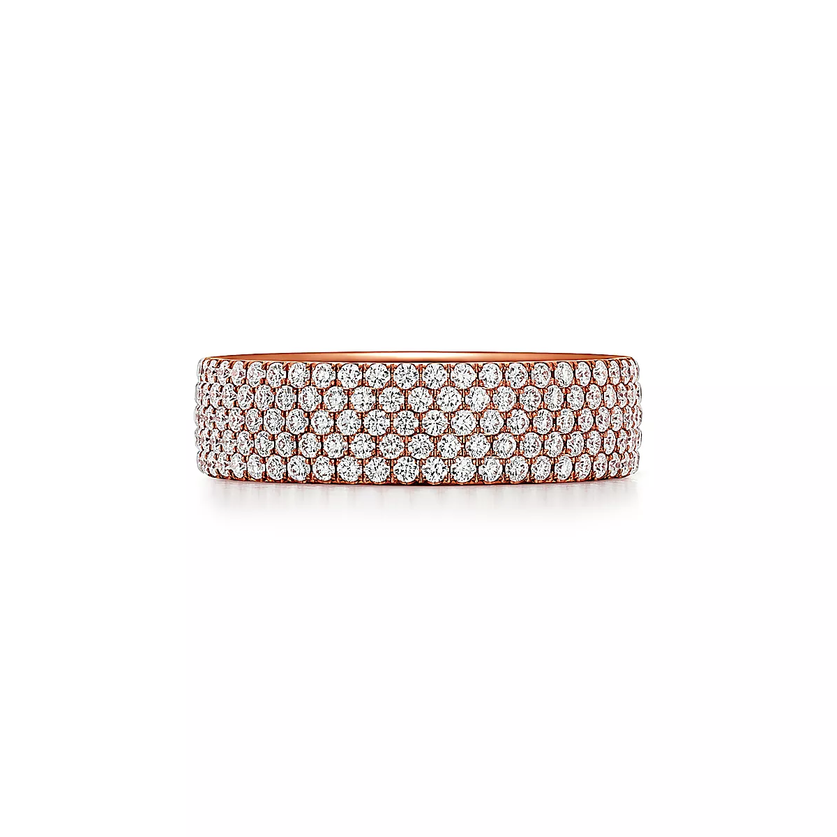 Streamlined and modern, the Tiffany Metro collection twinkles like a nighttime city skyline. Five rows of dazzling diamonds make this ring a stunning statement piece.