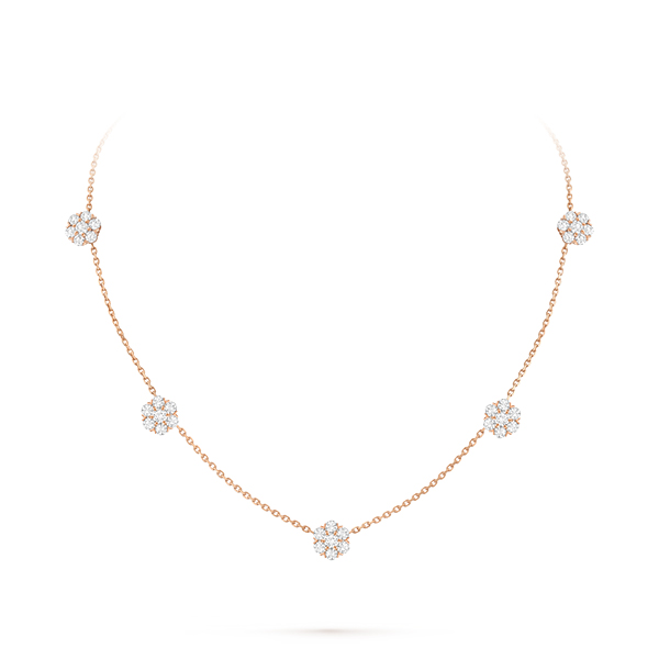 Fleurette necklace, 5 flowers 18K white gold, Diamond
