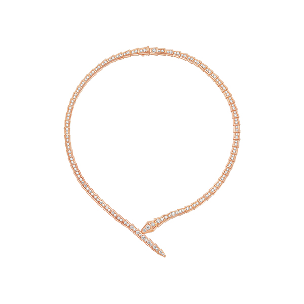 Serpenti Viper 18 kt rose gold necklace set with full pavé diamonds